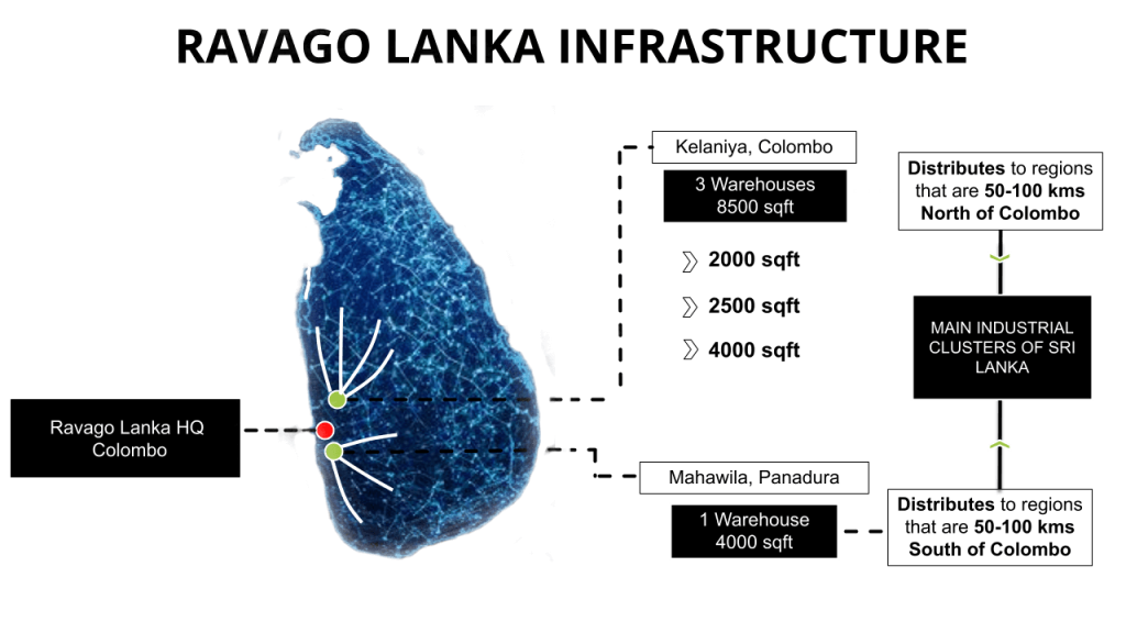state-of-the-art warehouse facilities totaling over 16,500 sqft across Kelaniya, Panadura, and Ragama. With a strong